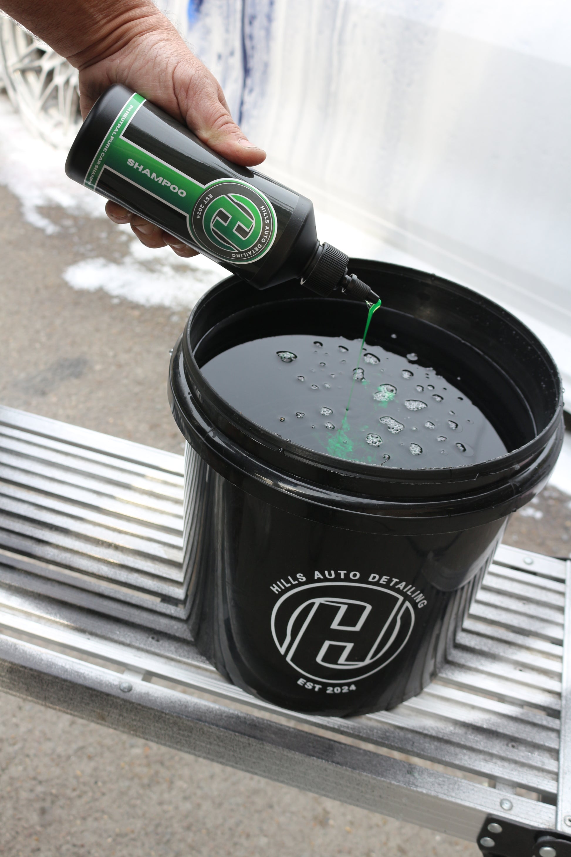 Once Pre wash is completed you may dilute the shampoo 1 part shampoo to 250 parts water into you bucket and spray with some pressured water to enhance the foaming particles in the shampoo.